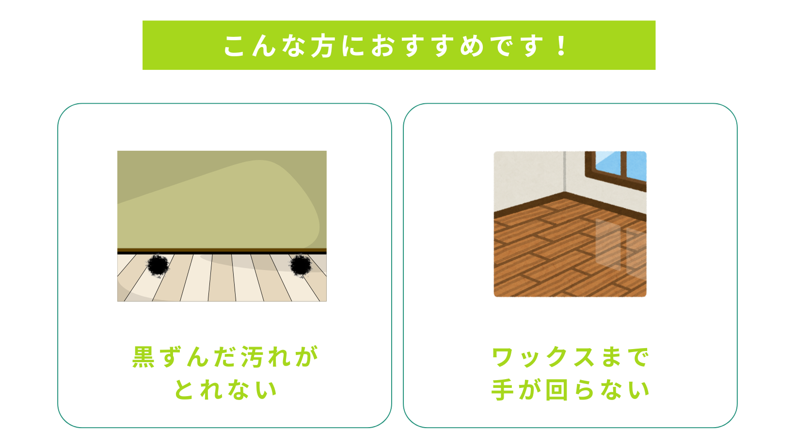 - 既存ワックスの状態により、剥離作業(オプション)が必要となる場合があります。