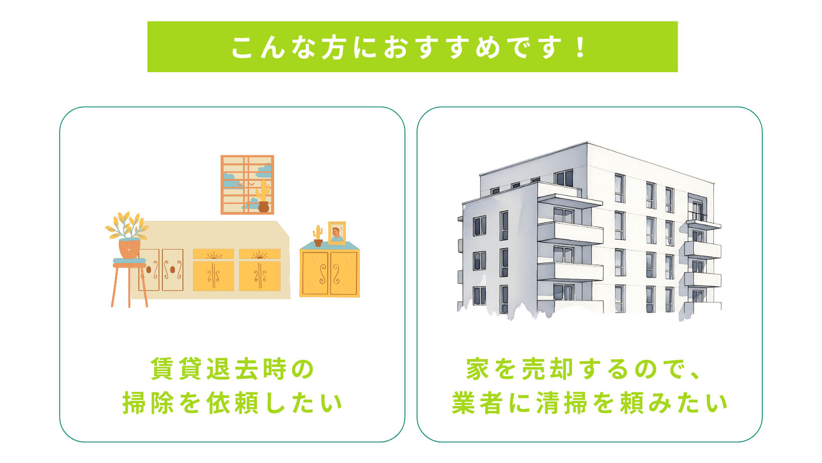 - 家具・家電・荷物などが残っている場合は「居住中清掃」となり、作業内容・料金が異なります。
