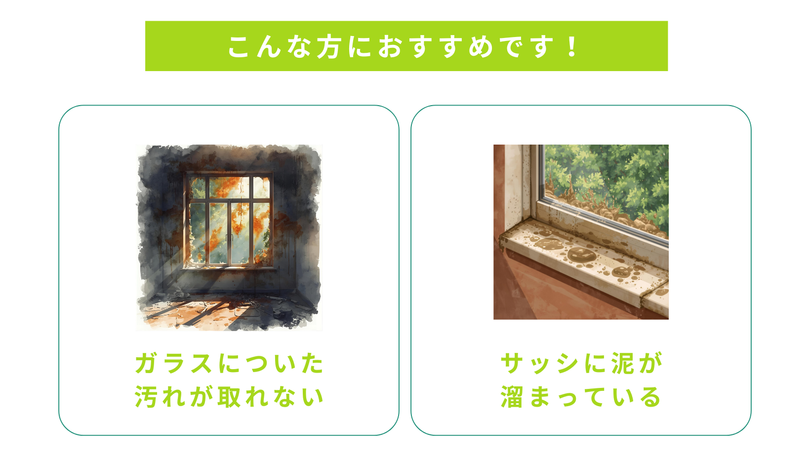 - 高層階や外側からの清掃が困難な場合は、内側清掃のみでの対応となる場合がございます。